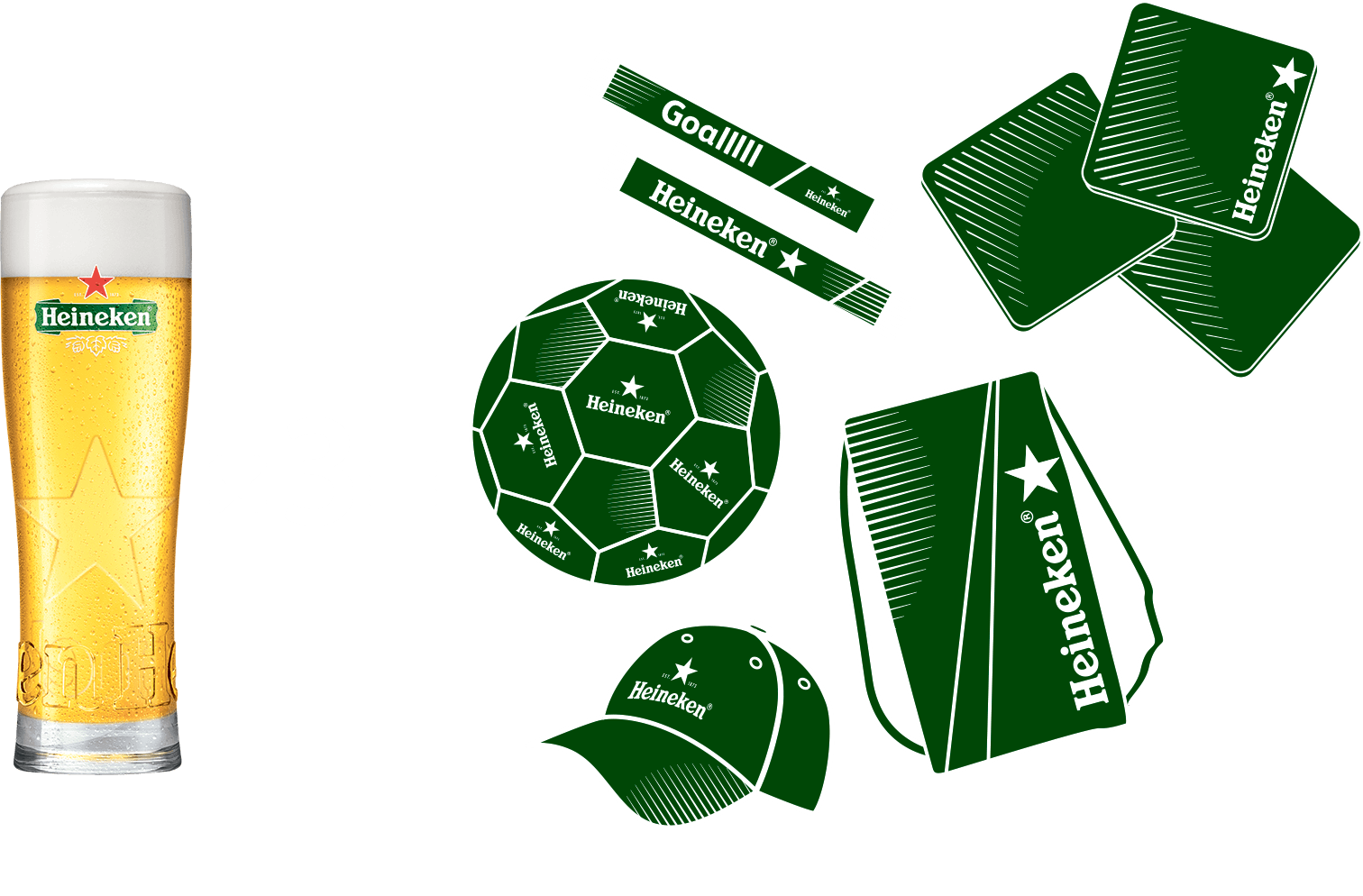 * При покупке 3-х бокалов разливного пива Heineken объемом 0,5л, далее «Продукт», получи гарантированный подарок. Количество Продукта и подарков, участвующих в акции, ограничено. Для получения подарка необходимо обратиться к сотрудникам заведения и предъявить чек на покупку Продукта. За каждые 3 порции Продукта в чеке получи 1 подарок. Наличие Продукта в данной торговой точке, условия акции, перечень подарков и правила их получения уточняй у сотрудников заведения. внешний вид подарков может отличаться от представленных. ** GOALLLLL — ГОЛ.